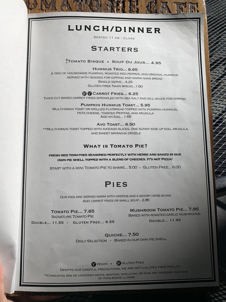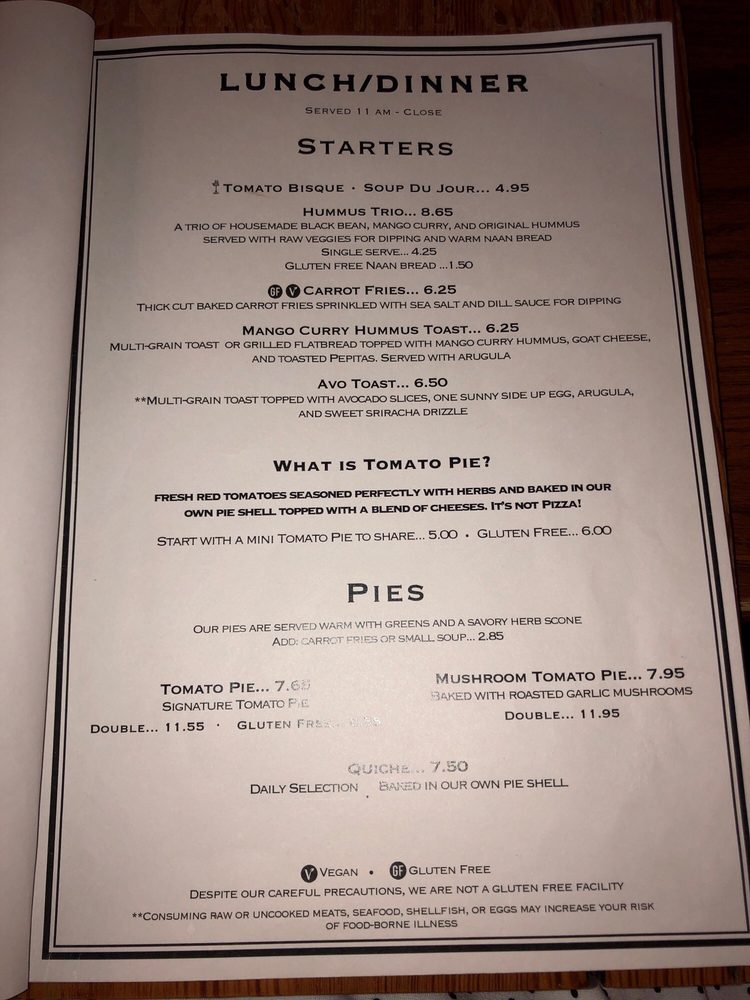 The cafe accommodates all, featuring vegan options and outdoor seating, making it a perfect gathering place. Diners praise the warm atmosphere and attentive service. Customer favorites also include the Pumpkin Whoopie Pies and the Salted Nutella Cookie Bar, both desserts crafted to perfection. Whether you're stopping by for a quick takeout or a leisurely meal with family, Tomato Pie Cafe promises a delightful dining experience for everyone.